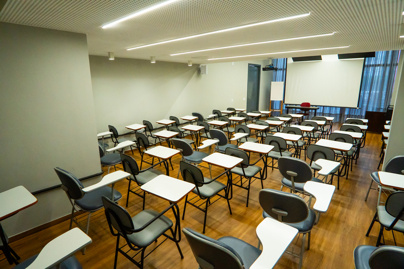 - Espaço amplo e totalmente equipado com móveis, projetor, quadro, sistema de som e microfone;